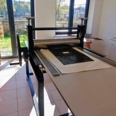 Après 20 ans dans mon précédent atelier, j’ai posé mes pinceaux et ma presse dans un nouveau lieu inspirant, niché dans un cadre idyllique près de l’eau, à Tilff près de Liège (B). Cet environnement naturel est une source inépuisable de créativité, influençant mes œuvres et nourrissant ma démarche artistique.