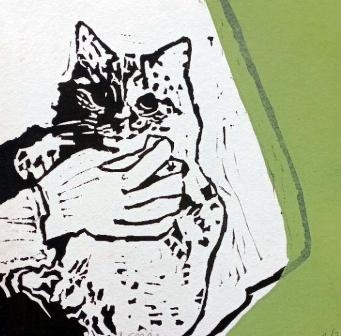 Pour moi, la gravure est un moment de silence, un geste lent et précis et j’aime cette rigueur : chaque trait creusé fixe une empreinte, une mémoire. C’est vraiment  dans ce face-à-face entre la force de la gouge et la surprise de l’encrage et des tirages que je retrouve ma liberté de créer.